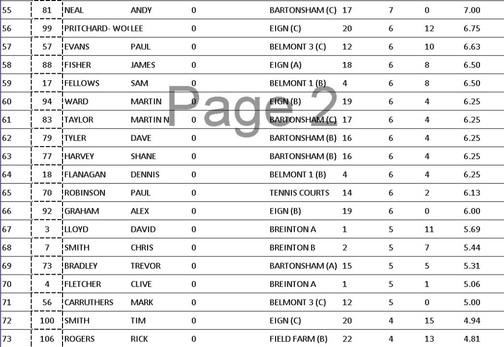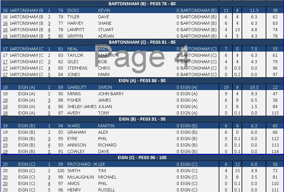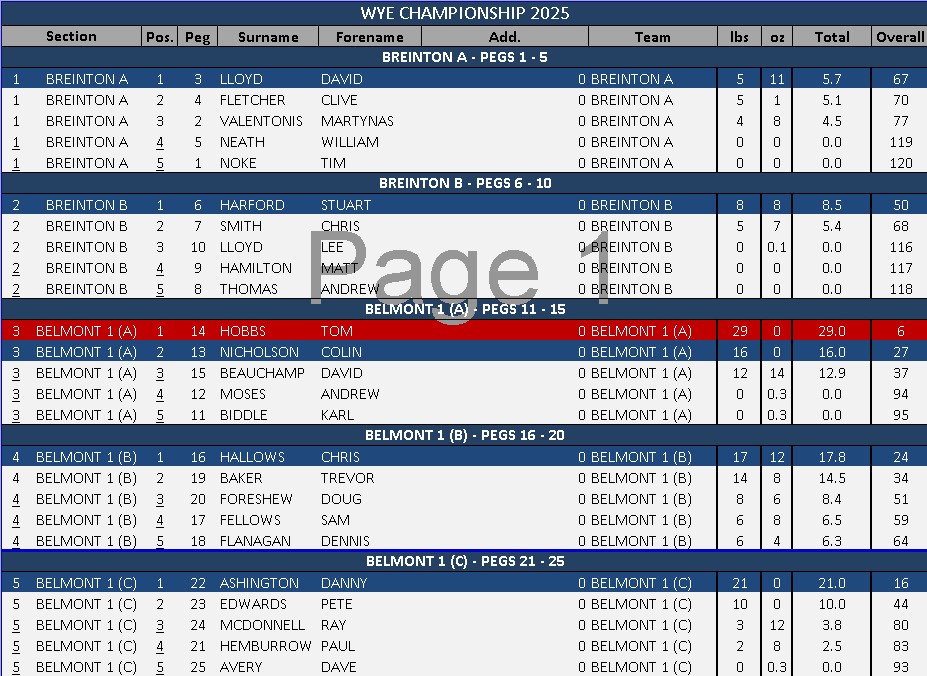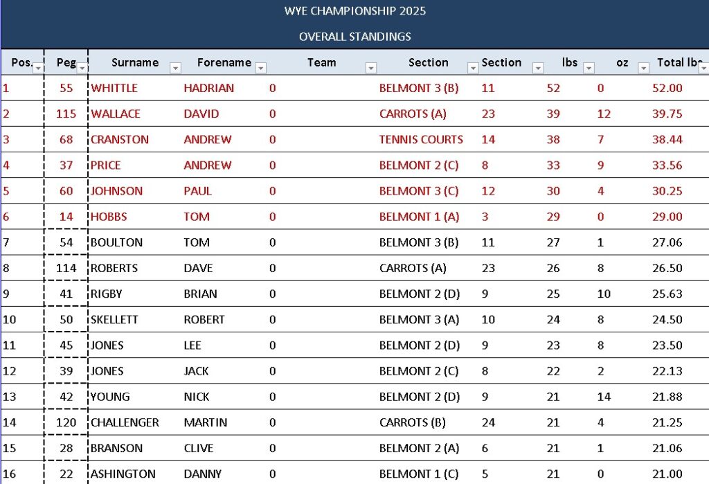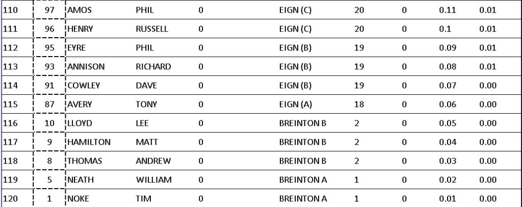 With the river not in a settled condition it was not surprising that it did not fish that well and there were dry nets in most sections. Full results below: