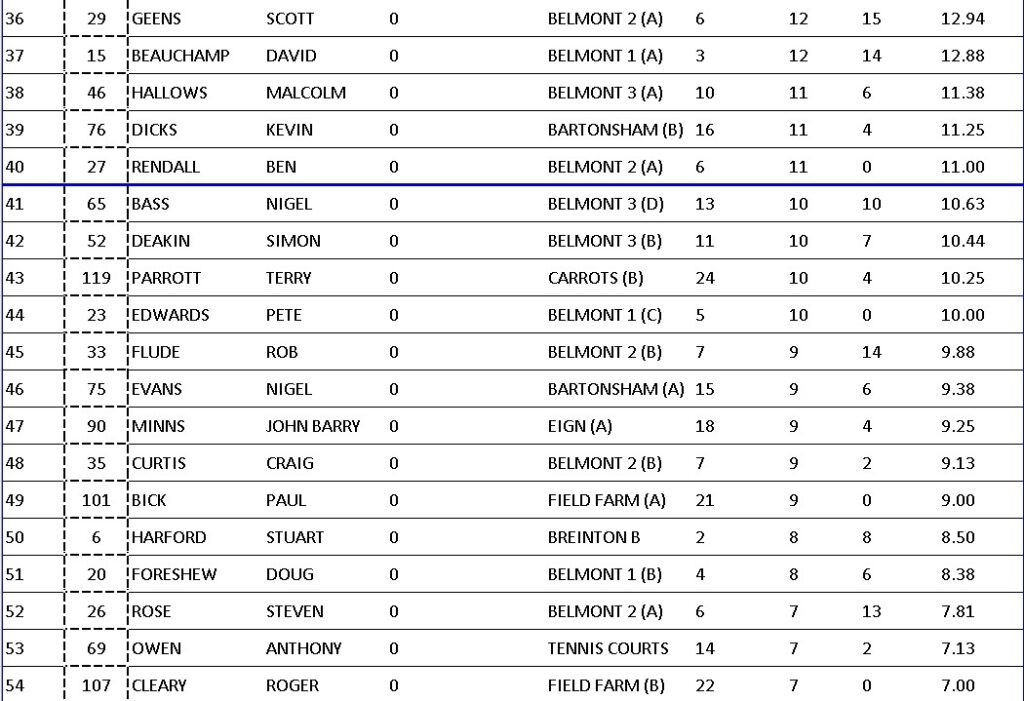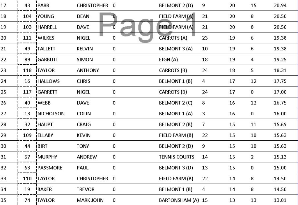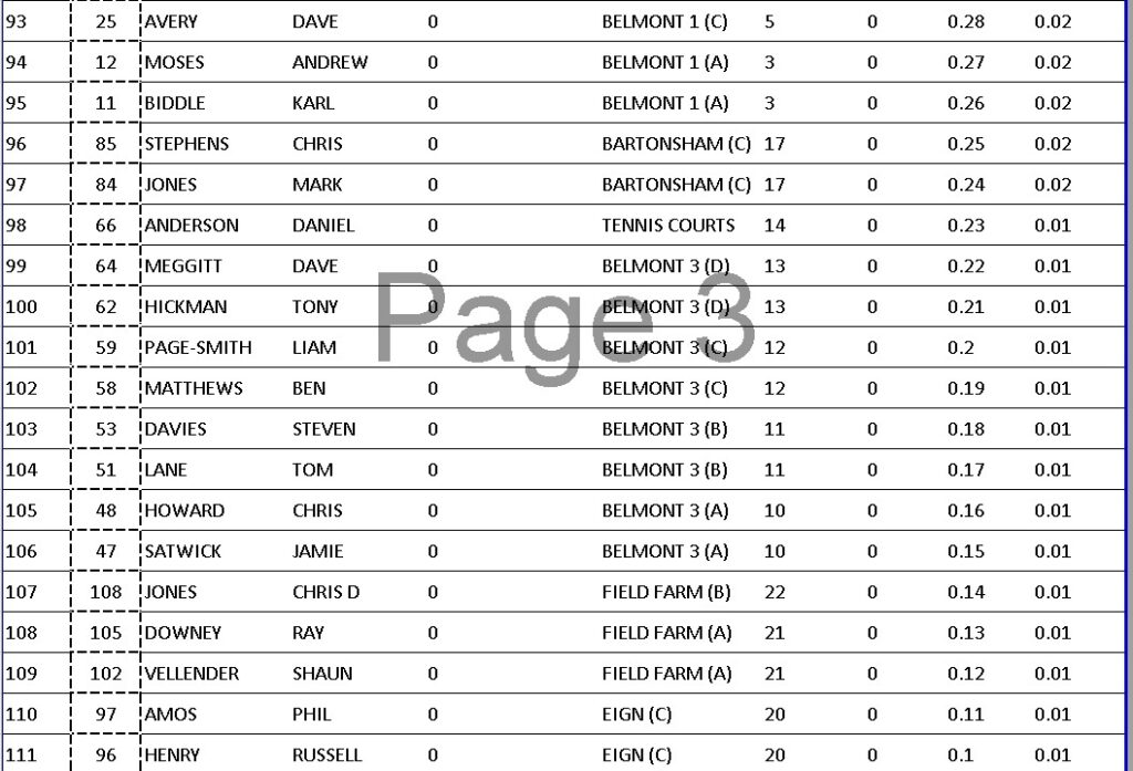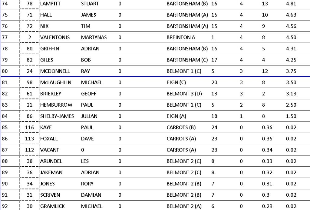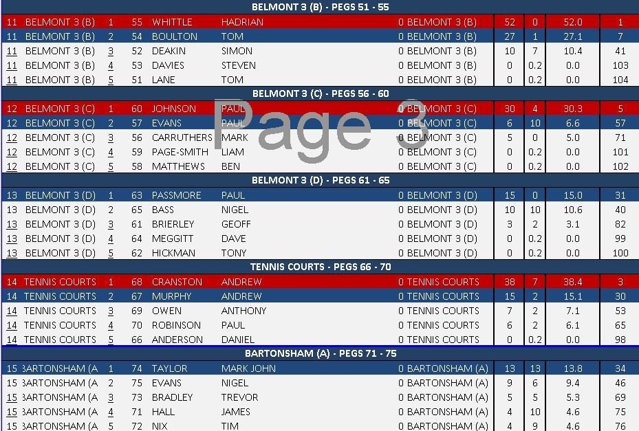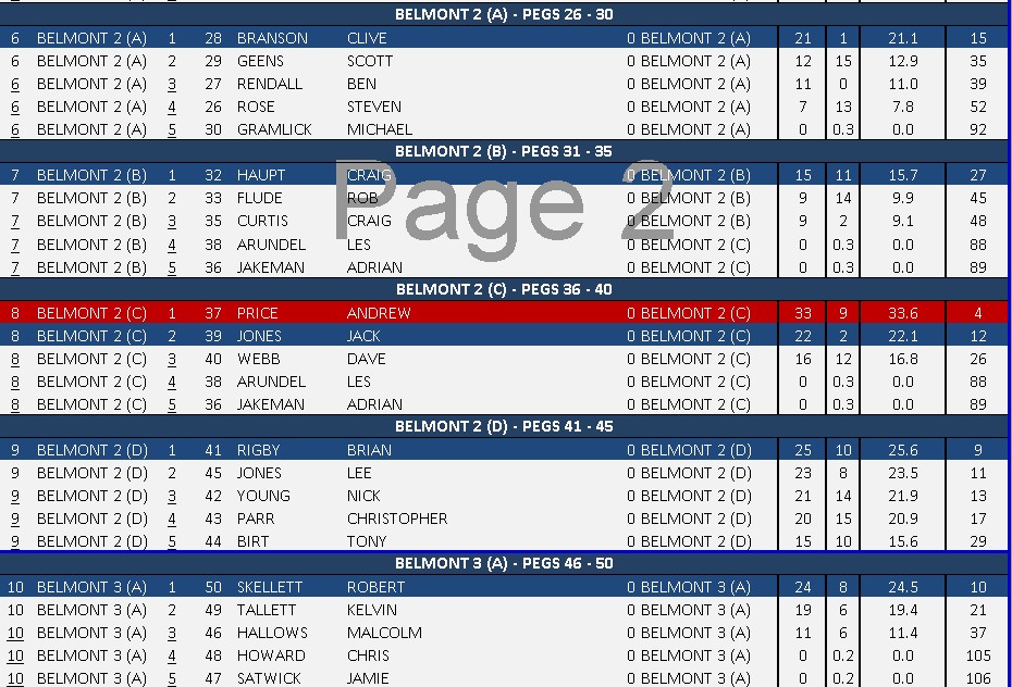 At the draw there were the usual moans and groans when the anglers realised which section they had drawn on. Those drawing Belmont 2 (Rugby Club side) or Belmont 3 (Asda bank) were relieved as there were no long walks involved and only the large bleak shoals to contend with. The only question then was to choose whether to fish for the bleak or try and get to the better quality fish below them. As the match is divided into 24 five peg sections, the aim is to at least catch more than the other 4 anglers in that section in order to claim the section prize of £55.